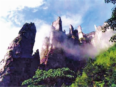 大箬岩在楠溪江西侧,包括大箬岩、十二峰、百丈瀑、石门台、小箬岩等景点。由永嘉县出发,乘旅游车可直达景区大门,交通便利。大箬岩是道教“第十二洞天福地”,南朝梁名士陶弘景曾隐居于此,故又称陶公洞。陶弘景多才多艺,对天文、历法、医药、地理、书法、琴棋都有研究,而且造诣颇深。此外,他还好道术、爱山水,被道教视为神仙。此洞古奥神秘,分上下两层,内藏庙宇,供奉着陶弘景的塑像。大箬岩之后怪石嶙峋,云雾弥漫,有“白云回望合,青霭入看无”的意境,而十二峰、百丈瀑即深隐其间。百丈瀑落差达120米,飞练下注,如玉龙狂舞,其气势与雁荡山大龙湫瀑布堪称伯仲。百丈瀑之东北有石门台,台下的九漂瀑暗锁在层峦密林中,给人以“千呼万唤始出来,犹抱琵琶半遮面”的感觉,甚为奇特。