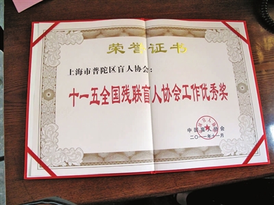 在普陀区残联,记者见到了刚从北京领奖回来的尉小晋,穿着一身红衣的她显得特别精神。她向记者介绍了区盲协的工作。魏小晋说,这份荣誉既是对普陀区盲协工作的肯定,也是一种激励。