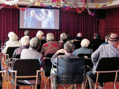 敬老院的老人们在艺术节期间欣赏由沪西电影院配送的公益电影