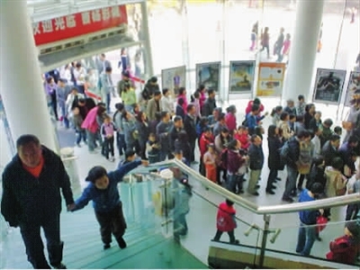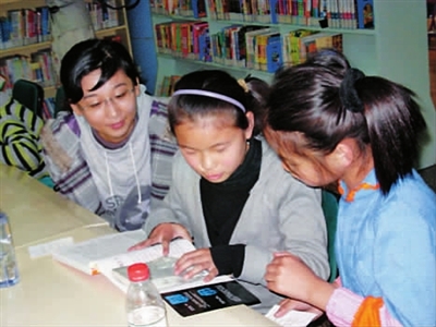 小读者在文化艺术、旅游、购物节期间参加区少儿图书馆举办的“牵手上海”外来务工子女图书馆体验活动。