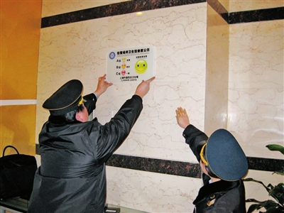 区卫生局卫生监督所日前在辖区内推行住宿、沐浴、美容美发、游泳场馆四类公共场所卫生信誉度等级公示。现评定出A级公共场所42户、B级公共场所318户、B级以下公共场所134户,并按照A级“笑脸”、B级“平脸”、C级“哭脸”,组织监督员将卫生信誉度公示牌张贴在公共场所醒目位置。 摄影报道 叶云洁