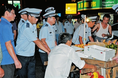 同济大学校区(交通路真南路口)周边道路的乱设摊现象成为顽症,虽经几次整治后乱设摊现象有所好转、行动后周边道路也有队员固守,但到队员下班后乱设摊现象迅速回潮、针对此现象大队领导高度重视,要求开展不定期的整治行动。在督导科统一指挥下,相关分队及大队机动队参加多次对同济大学校区周边道路占道设摊及夜排挡等违法行为进行整治,取得良好的社会效果,有效的改善了周围居民的生活环境。