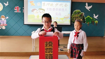 开幕式上,该校大队委员代表向全体与会代表作了《达人金豆豆,腾跃展风采》学年工作报告,回顾一年来大队部的工作情况,并提出了今后努力方向。随后开展了新一届大队委员竞选演讲活动,大队委员候选人自信满满地走上台,一一向代表展示自己的工作能力,自己多年来组织、参与活动的优异成绩。代表们则非常认真地倾听每一位候选人的竞选演讲,并在选票上投下自己一票,学习着投票。开幕式结束后,少代会代表们带着提案表来到自己的队员们身边,以主人翁的意识细细聆听队员们对学校建设、快乐学习、快乐生活等各方面的意见,认真撰写提案,学习着参与。(焦冠玉)