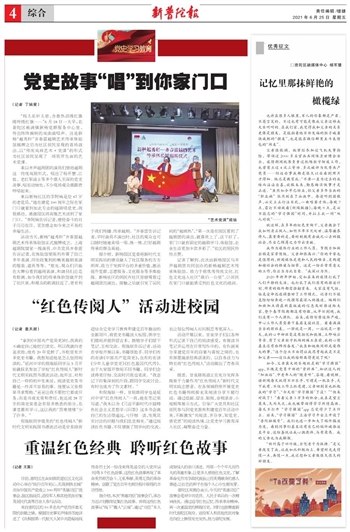 倪瑞辰同学提及的“红色传阅人”新时代文明实践图书漂流活动是甘泉路街道结合党史学习教育和建党百年推出的全新项目,将党史书籍送入校园,供学生们借阅并提供留言本,鼓励学子们留下笔记、互相交流。倪瑞辰告诉记者,活动在学校开展以来,书籍很抢手。同学们有的在读《中国共产党简史》,也有的在读《少年儿童学党史》《红色基因代代传》。由于大家错开借阅不同书籍,同学们会读得更仔细、交流时兴致也更浓。“我会记下印象深刻的片段,跟同学交流讨论,有时也成为了作文素材。”