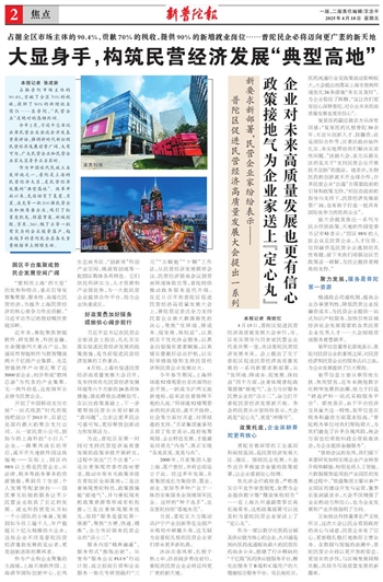 服务内容“精准滴灌”,服务形式“推陈出新”。从发布“服务企业PLUS”行动计划、成立招商引资和企业服务一体化专班到践行“三习”“五赋能”“十聊”工作法,从民营经济发展联席会议、民营经济圆桌会议到营商环境体验官等,普陀持续推动政务服务迭代升级。在近日召开的普陀区促进民营经济高质量发展大会上,普陀坚定表达全力支持民营企业做大做强做优的决心,聚焦“优环境、降成本、促发展、保权益”,以真抓实干优化涉企服务,以真金白银强化要素赋能,以真情实意做好法治护航,以实际举措鼓励和支持民营经济和民营企业发展壮大。