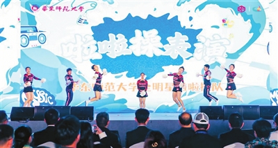 伴随着动感十足的音乐节奏,华东师范大学啦啦操队的队员们以整齐划一的动作、充满张力的队形变换和极具感染力的笑容点燃全场。她们时而腾空跃起,时而旋转舞动,将青春的热情与活力展现得淋漓尽致,为整场活动奏响了青春序曲。苏州河畔的清风拂过,仿佛也为这青春的律动而喝彩。