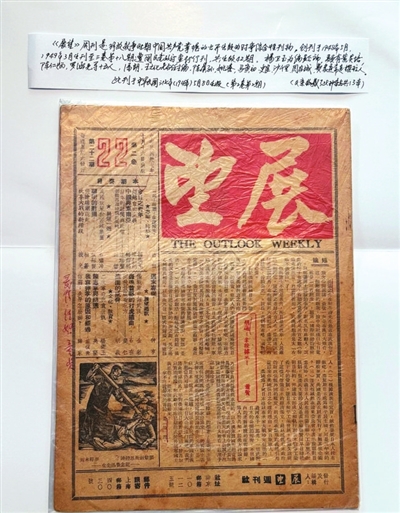 ■《展望》周刊是解放战争时期中国共产党掌握的公开出版的时事综合性刊物,创刊于1948年5月,1949年3月出刊至三卷第十八期遭国民党政府查封停刊,共出版42期,杨卫玉为编委会主席,委员有黄炎培、陈仁炳、罗涵先等十五人,潘朗、王元化先任主偏,陈虞孙、姚溱、马寅初、史良、沙千里、周谷城、费孝通常是撰稿人。(来自王旭清手写标注)